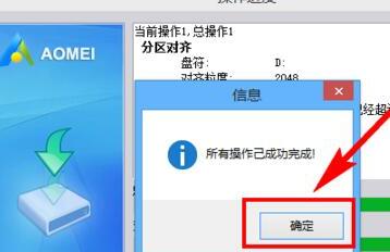 等待软件操作完成,点击确定,然后就能在软件中看到分区已经4k对齐了。