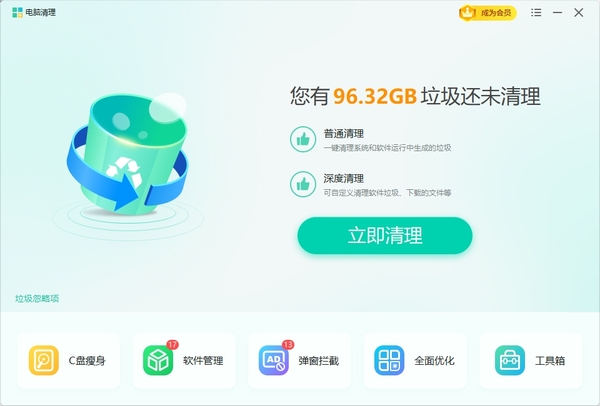 Windows优化大师功能非常丰富,其中也包括C盘清理,当我们点击【垃圾清理】功能,在此可以选择仅清理C盘,从而实现C盘清理,整个过程非常简单轻松。此外,Windows优化大师也不限于C盘清理,我们可以自主选择清理电脑的任何位置,而且设定过程都是很简单的。
