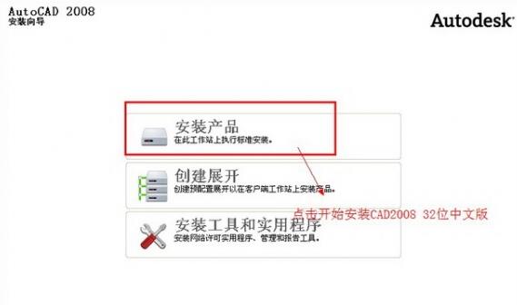 第三步:CAD安装向导,选择“安装产品”开始安装 。