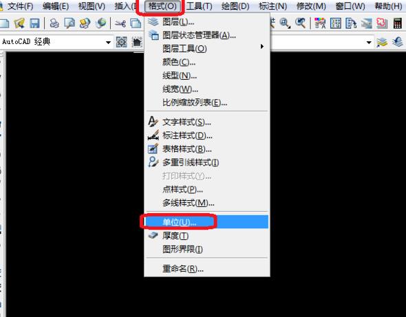 5、在单击格式-单位。这单击一般情况下都是毫米。