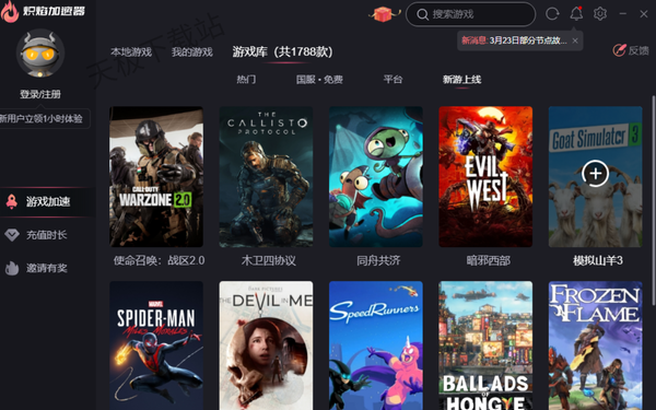 炽焰加速器是一款随时可暂停的游戏加速器,内嵌网络修复工具,无论是游戏卡顿、延迟高,还是掉线,加载慢,都可以轻松解决,按时长收费,可以随时暂停时长,非常好用。