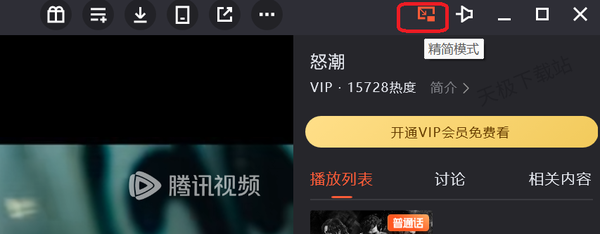 1.打开腾讯视频客户端的一部影视剧,点击右上角“精简模式”,如图。