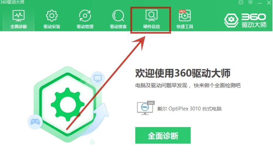 1.首先点击打开“360驱动大师”,鼠标点击工具栏的“硬件信息”即可查看我们电脑的驱动信息。