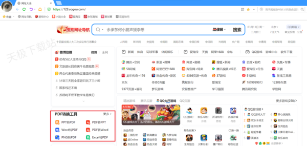 1.进入搜狗浏览器主页,在左下角就可以找到“PDF转换工具”。