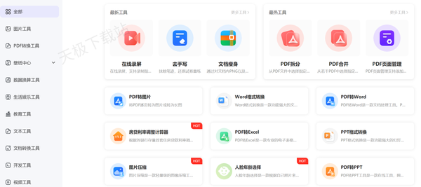 3.除了转换文档外,还有图片工具、数据换算工具、生活娱乐工具、教育工具、视频工具等。