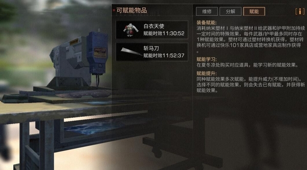 2、玩家可以使用配方在庄园的家用修理台上进行赋能,每一次赋能可以持续12个小时,如果要重复赋能只能够增加效果,不会增加时长。