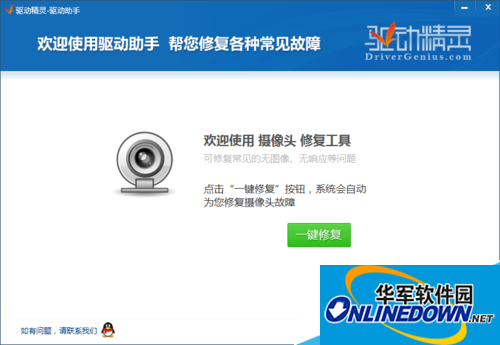 3、 很多摄像头不能正常使用都是由于注册表中的某些键值错误导致的,而驱动精灵的这款摄像头修复工具针对的正是这些注册表错误。在该工具的界面上单击“一键修复”即可。