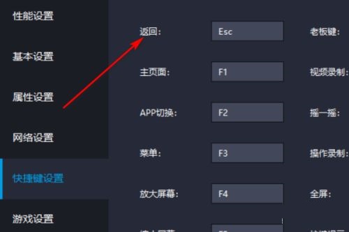 第四步:在快捷键设置中找到返回键,设置成需要的按键(如图所示)。