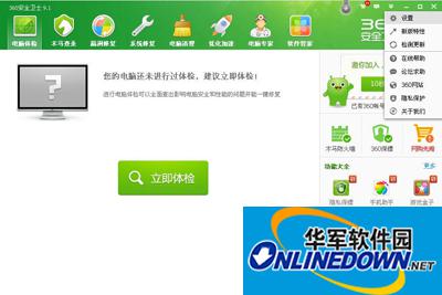 1、首先打开360安全卫士,右上角一个小箭头,选择“设置”。