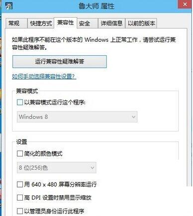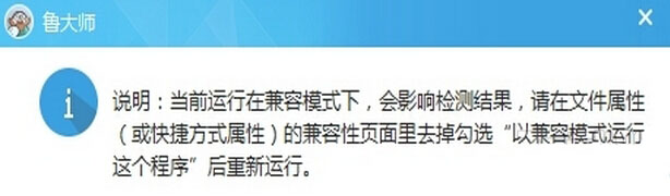 1、首先我们得明白这是我们系统和软件的兼容性问题,我们先按照上图的提示进入鲁大师的属性兼容性页面,然后去掉“兼容模式运行这个程序”的勾。如图: