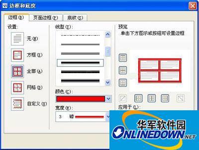 打开边框可底纹界面,我们在此可以对边框的线条类型、颜色等进行设置,如图2所示。