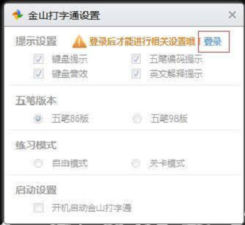 第三步:在金山打字通设置页面里面,我们先登录金山打字通账户。
