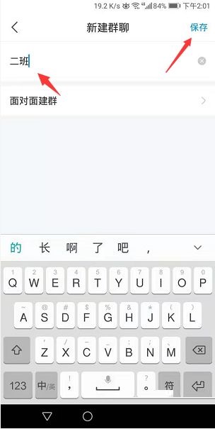 第四步:然后在页面上方输入群聊名称,点击右上角保存(如图所示)。