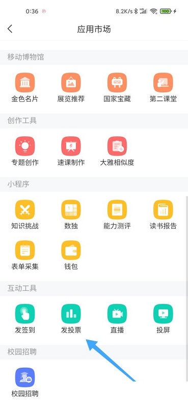 第三步:最后就可以在应用市场中找到发投票了(如图所示)。