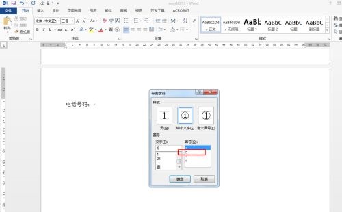 第四步:点击后“文字”中输入需要的文字,圈号中选择方框(如图所示)。