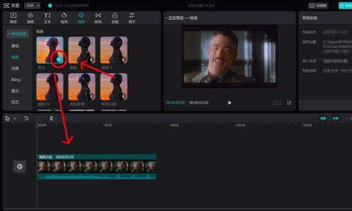 第五步:将特效添加至时间轴(点击特效下方加号)。