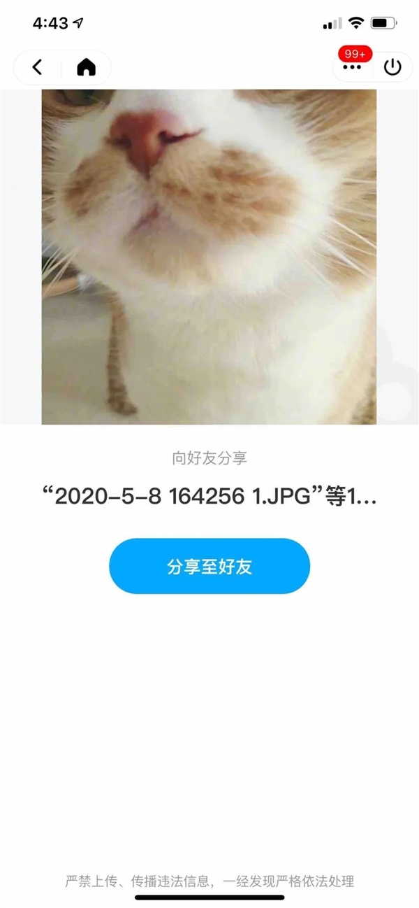 进行登录授权后,即可进入自己的网盘QQ小程序主页,选中自己想分享的文件给好友即可;