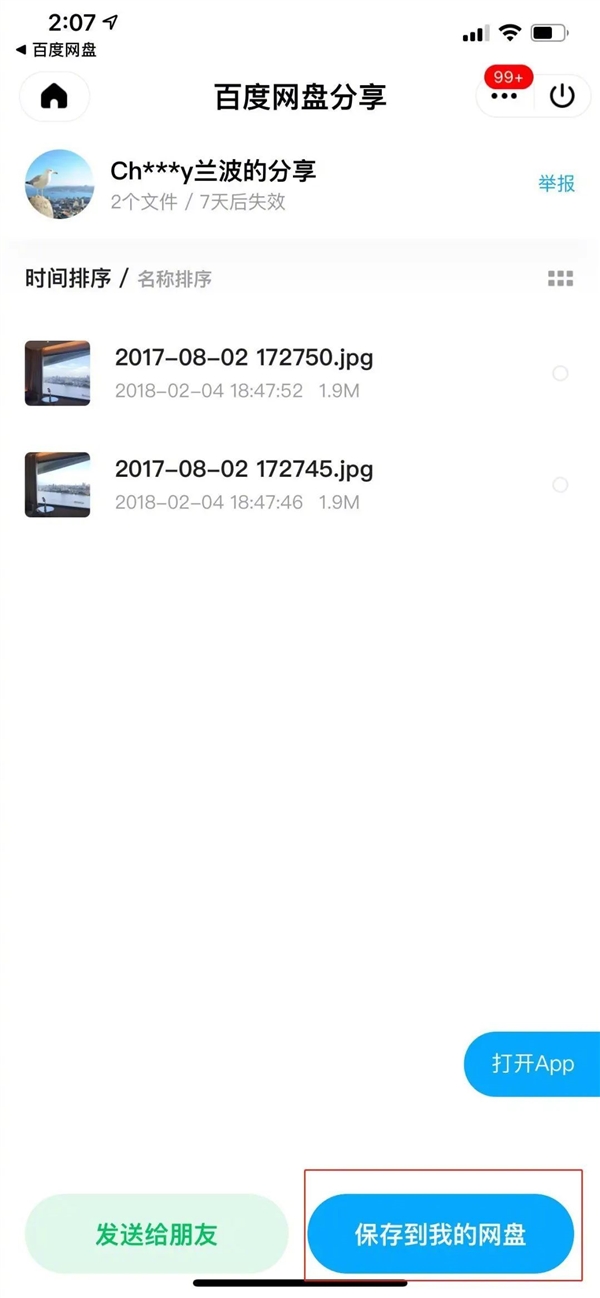 点击好友分享给你的文件-点击“保存到我的网盘”即可;