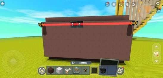 步骤四:正中间的位置用棕色硬沙块建造一个长32格高2×2的长方体。
