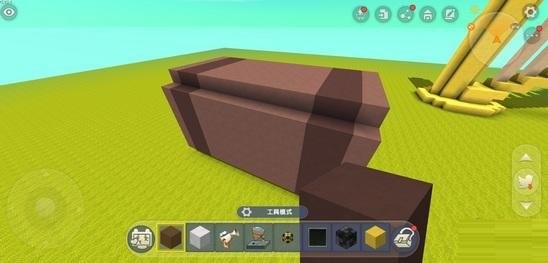 步骤六:接下来我们制作它的弓杆,就放在整个琴筒后下方,用棕色硬沙块制作成的一个32格长的形状。