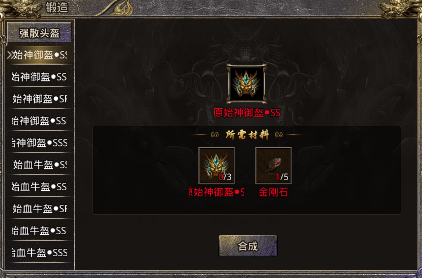 1、强散头盔:强散头盔一共分三种,第一种是原始神御盔,顾名思义,是加防御属性的,第二种是原始血牛盔,是加百分比血量的,第三种是鸾羽九凤盔,加血量和暴伤抗性。