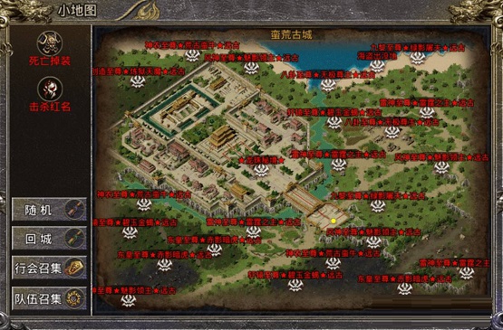 2、蛮荒古城是通过地宫长廊里面的次元裂缝中进入,进入没有时间限制,最低野怪是五焰,BOSS有很多这里就不具体说有多少了,每个野怪包括BOSS都有几率爆出弑神装,BOSS刷新时间不同刷新的时候世界频道会有提醒,这个地图要注意一点的是:地图一共会有四个服的玩家在一个图随身要带着召集令,因为在这个图里被砍实在是太常见了,因为野怪刷新的并不多所以很多玩家就是去砍人抢怪。