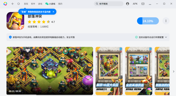 随着手机游戏的盛行,很多玩家其实已经厌倦了在手机屏幕上打游戏,因为屏幕小还不好操作,尤其对于这种策略对战手游来说更需要大屏才能开心畅爽。所以小编建议大家在本站安装应用宝电脑版,这样就可以在应用宝的平台上下载体验各类游戏了,快速安装完成后就可以随时随地打一局了。