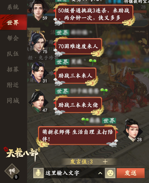2,作为新手玩家,如果想拜师需要等级达到至少28级,然后在师徒招募平台或者世界频道发言喊话来寻找师父。