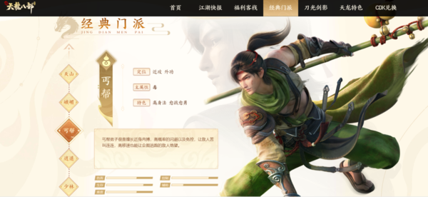 2,所以连续攻击是丐帮的特色优势技能,可以在短时间内打出高额的伤害,但是距离有限,如果被对方逃跑的话,就不容易命中,然后就是丐帮门派独有的毒属性技能了,可以持续的造成伤害,就算敌方逃走也可以一直掉血,还可以给自己加上一个防御的buff,让丐帮进场打团时,有更好的防御性。
