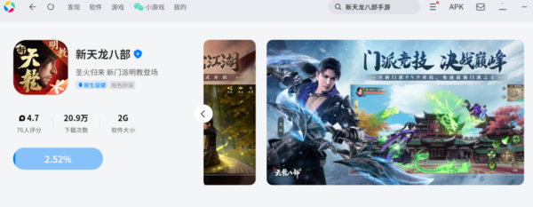 现在在本站下载腾讯应用宝就可以安装新天龙八部手游的电脑版本了,让我们在电脑上可以更加酣畅淋漓的作战。还等什么呢,赶快在电脑上体验新天龙八部手游的丐帮门派吧。