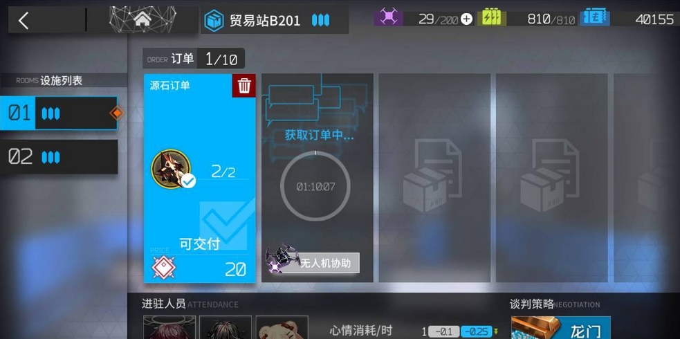 2、选择开采协议,这样贸易站就会产生源石订单。