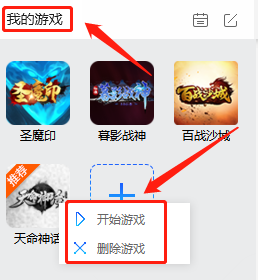 如果我们打开的是网页游戏或其他类型游戏,点击开始游戏后,游戏图标会自动添加到“我的游戏”一栏中。在我的游戏选项栏中,选中游戏图标,单击鼠标右键,可以选择打开游戏或删掉游戏。