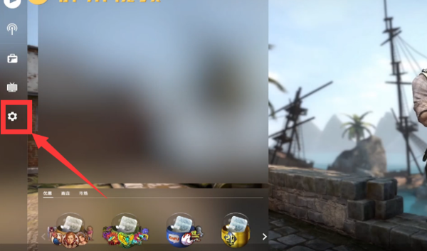 第一步,当然是先登录CSGO游戏,然后在主页面左侧的菜单中点击最下面一个【齿轮】状的按钮。