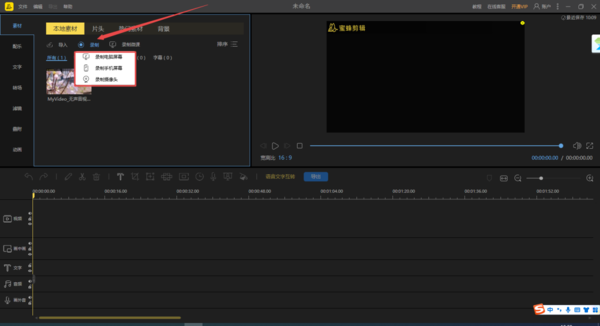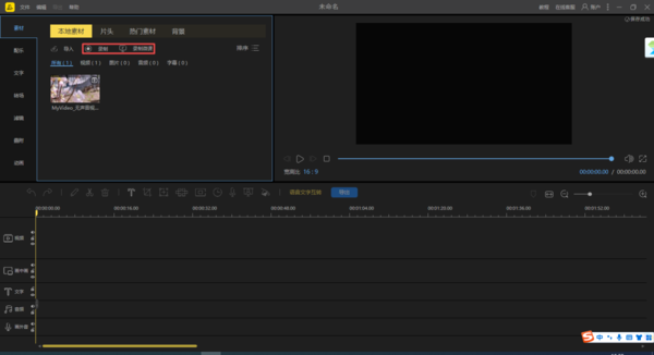 接着,我们就进入到蜜蜂剪辑软件的主界面当中后,此时在【本地素材】区域下方,除了有【导入】选项外,就可以看到【录制】以及【录制微课】的功能按钮了,这个就是蜜蜂剪辑软件录屏功能的位置了。