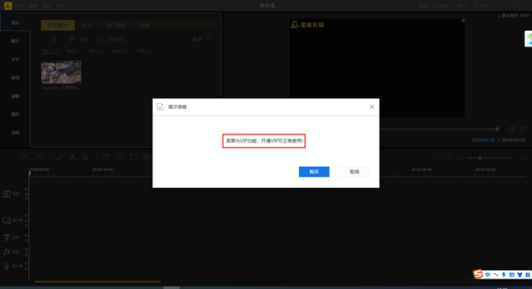 紧接着,软件会弹出【录屏为VIP功能,开通VIP可正常使用】的提示,然后点击【购买】按钮来开通软件的VIP会员后,就可以直接进行使用了。