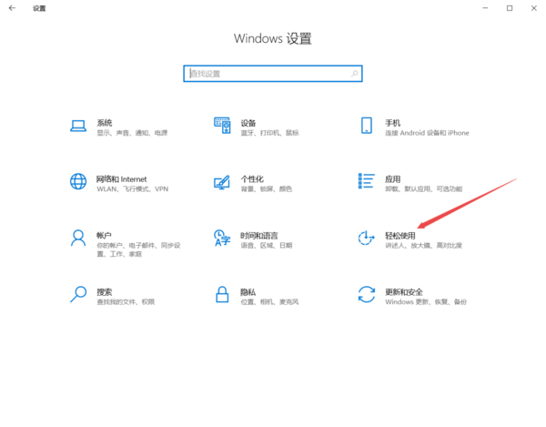 2、进入到电脑的Windows设置界面后,找到【轻松使用】功能并点击进入。