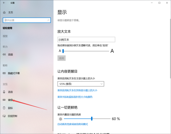 3、进入到系统的轻松使用设置界面当中后,在左侧的列表中找到【键盘】选项,并点击进入。