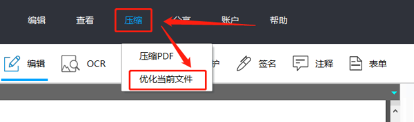 如果需要对当前的文档内容进行稍许的优化压缩,可以选择优化功能来对文件内容进行修改,仍然是在“压缩”选项中,点击第二个选项“优化当前文件”,然后在弹出的弹窗中进行设置就可以了。