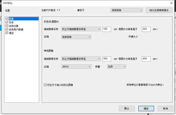 在弹窗中可以对图片、字体等进行优化,像是调整像素,压缩文件大小等,都可以在这里设置,修改完成后点击下面的“确定”就可以了。