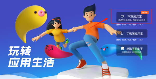 途径2:在浏览器中搜索“应用宝官网”,进入官网后在页面的右上方附近点击“PC版应用宝”进行下载。
