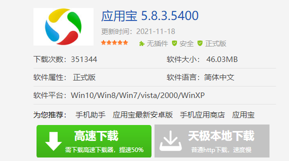 途径1:通过本站可直接下载应用宝安装程序,节省查找资源的时间,下载绿色安全的软件。