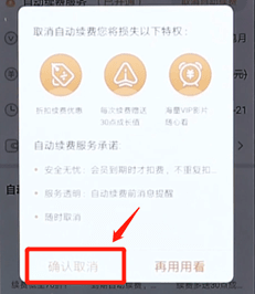 第六步,点击【取消自动续费】按钮,会弹出【取消自动续费】的提示框,点击【确认取消】按钮即可,自动续费就取消了。