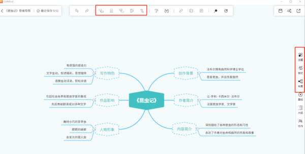 对于Gitmind导图模板的编辑,其实和我们日常新建思维导图时的编辑方法大相径庭,其中我们可以在上方工具栏进行节点、概括、联系的添加,我们可以利用这些对基础的导图模板进行修改,改成自己想要的样子;另外,我们还可以在右侧工具栏对模板进行结构及主题上的变换,可见模板编辑的自由度还是很高的。