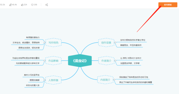 首先,我们在左侧分类栏中选择【读书笔记】,以找到读书笔记的模板,然后,假设我们看上了“《昆虫记》思维导图”,那就点击它以预览详情。