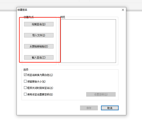 这时候会跳出弹窗,这里我们有四种方法添加签名,分别是:绘制签名、从文件导入、从剪贴板粘贴以及输入签名。输入或添加完成后,点击下方的“保存”就添加成功了。