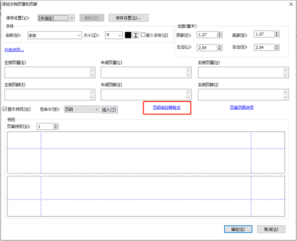 2、打开页面页脚设置界面后,找到下方的“页码和日期格式”选项并点击。在“页码和日期格式”弹窗中选择好起始的页码和页码的格式,设置好最后点击确定。