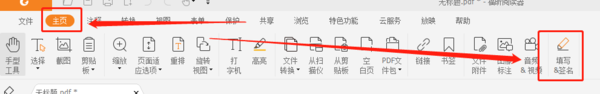 首先我们在福昕pdf阅读器中打开需要编辑的pdf文档,然后在顶栏中点击“主页”,在下方出现的选项中选择“填写&签名”点击上方绿色的加号。