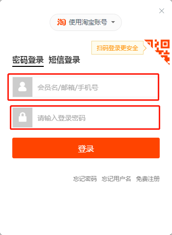 2、弹出的登录界面,这里我们可以看到,使用淘宝账号就可以登录到UC浏览器上,这里输入会员名(或输入邮箱、手机号)及密码就可以登录,使用短信验证码登录也是可以的。另一种方法,使用手机淘宝扫描右下角二维码也可以登录UC浏览器电脑版。
