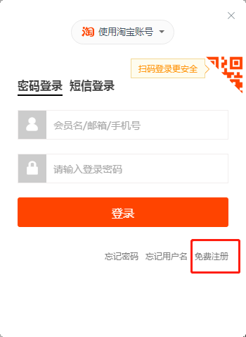 3、如果没有淘宝账号,点击下方的“免费注册”就可以进行淘宝账号的注册了,注册完成后,回到登录页面就可以登录UC浏览器了。
