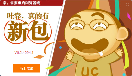 2、若检测出可以升级新版本,左下方会有版本名称的标红提醒,点击下方的“马上试试”,UC浏览器电脑版就会开始更新并重启,重启后再启动UC浏览器电脑版,这时的浏览器就是最新的版本了。